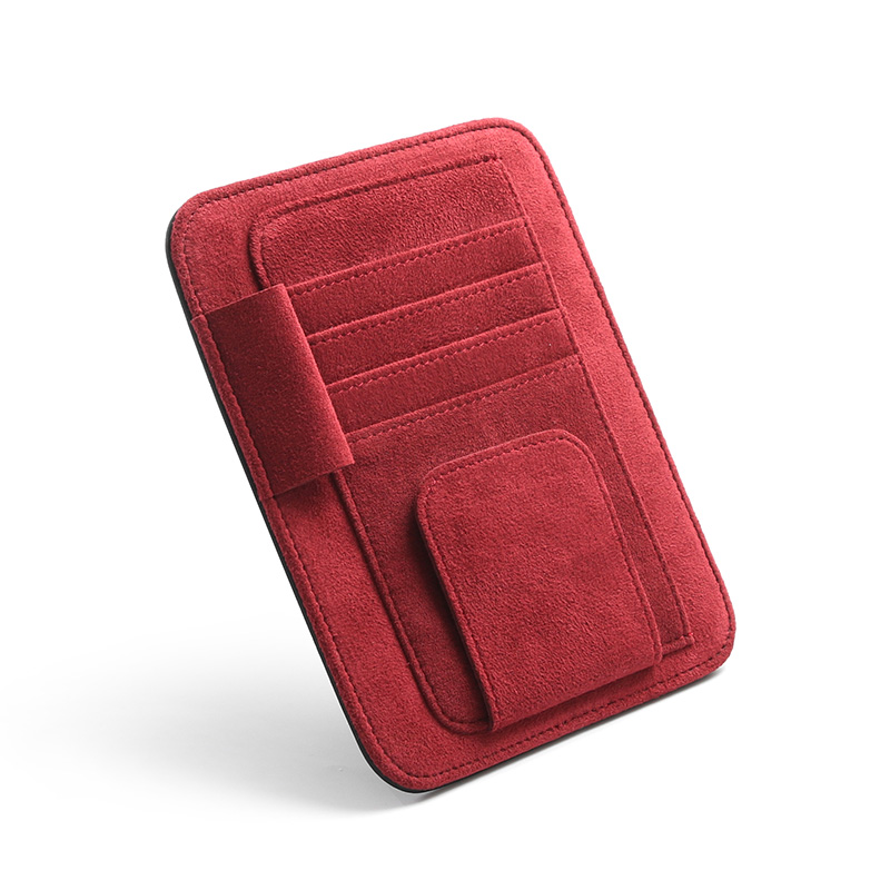 Alfanxi Car Sun Visor Organizer Italy Alcantara Material Sunglass Holder(Red)