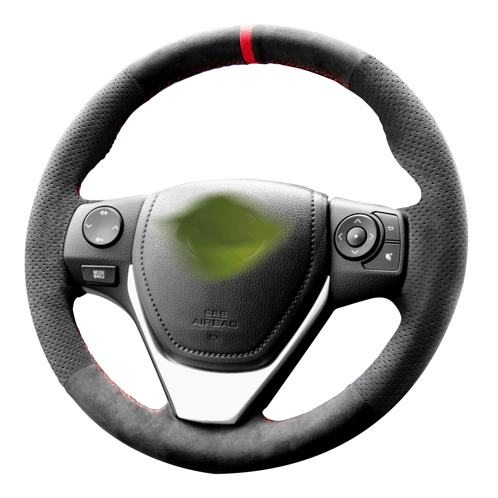 Alfanxi Hand Stitch Sewing Alcantara Car Steering Wheel Cover Wrap for Toyota RAV4/COROLLA/AURIS/ISIS(Perforated Sides,Red Stripe)