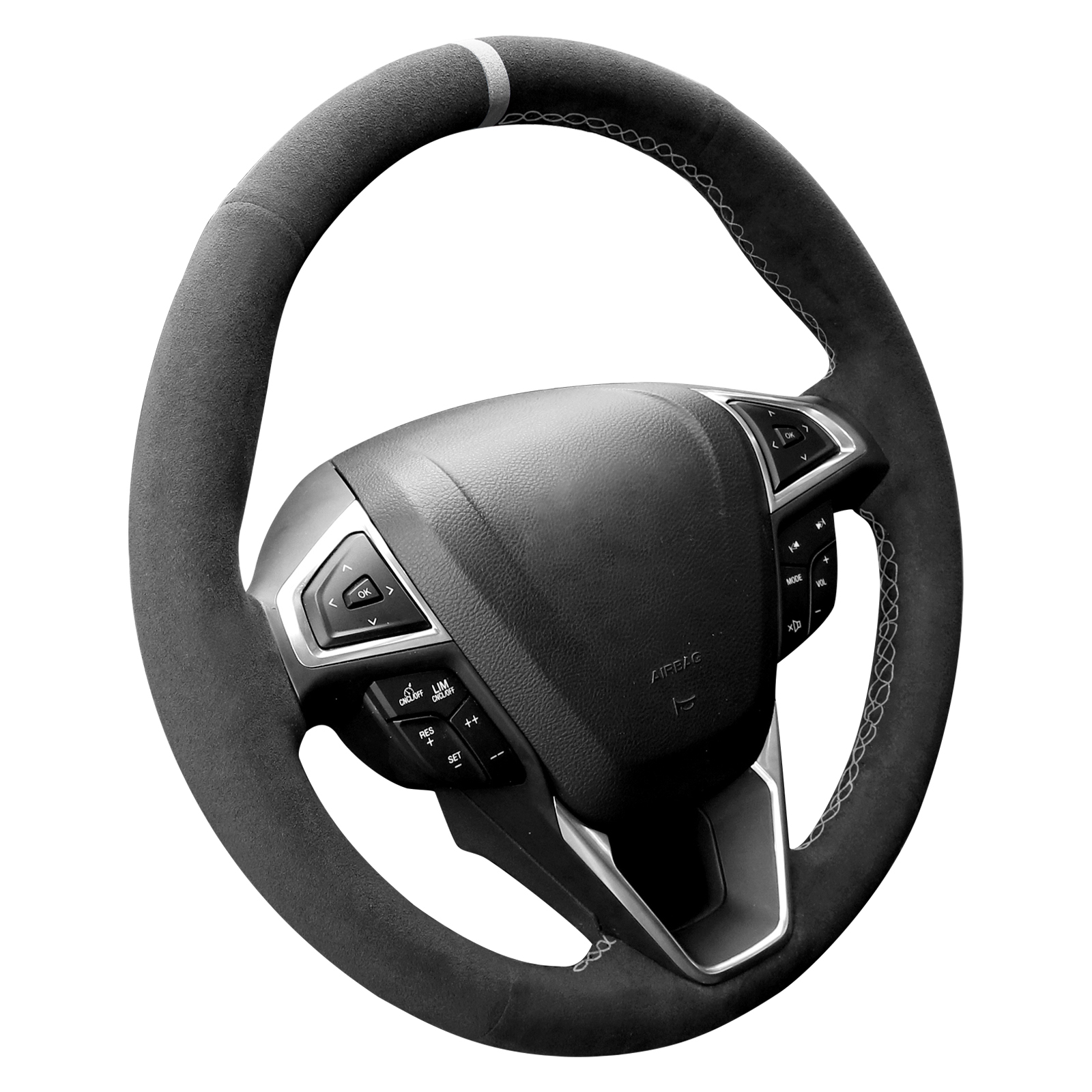 Alfanxi Hand Stitch Steering Wheel Cover Alcantara Material for Ford Edge Fusion Energi Hybrid Galaxy Mondeo S-MAX 2014-2020(White Stripe)
