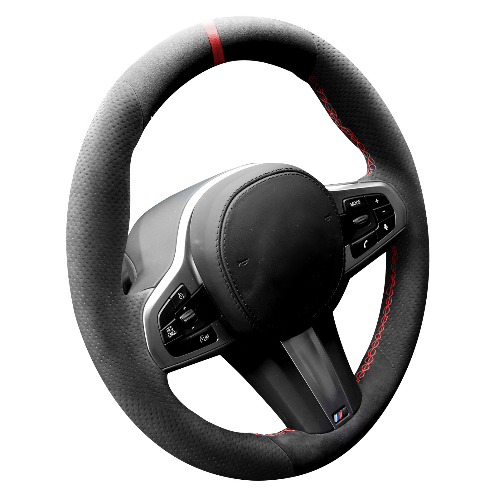 Alfanxi Hand Stitch Steering Wheel Cover Alcantara Material for G20 G21 F40 F44 G22 G26 G30 G31 G32 G11 G12 G13 G14 G15 G16 G01 G02 G05 G06 G07 G29(Perforated Sides,Red Stripe)