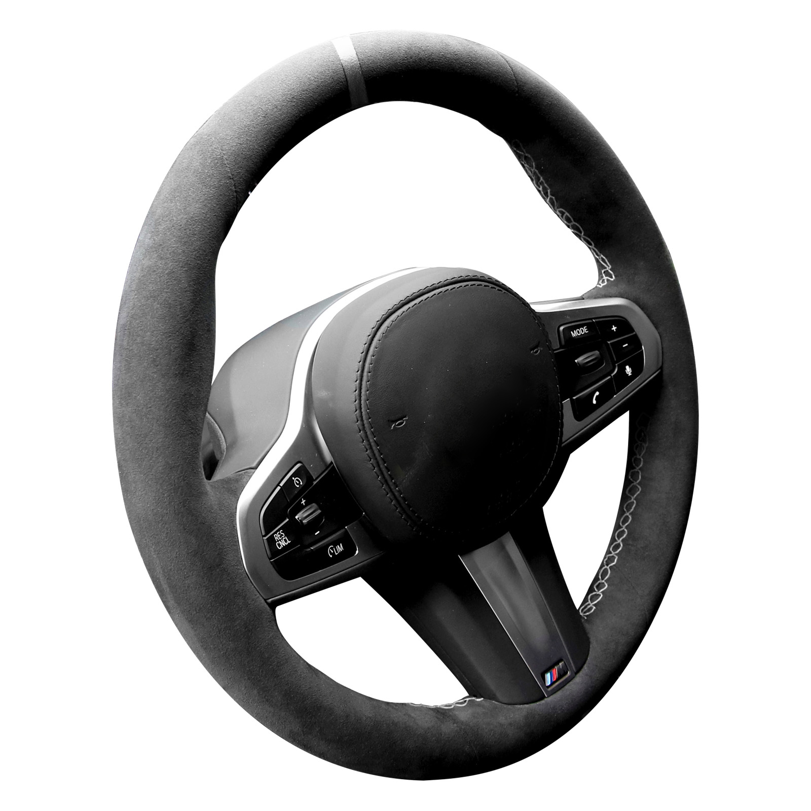 Alfanxi Hand Stitch Steering Wheel Cover Alcantara Material for G20 G21 F40 F44 G22 G26 G30 G31 G32 G11 G12 G13 G14 G15 G16 G01 G02 G05 G06 G07 G29(White Stripe)