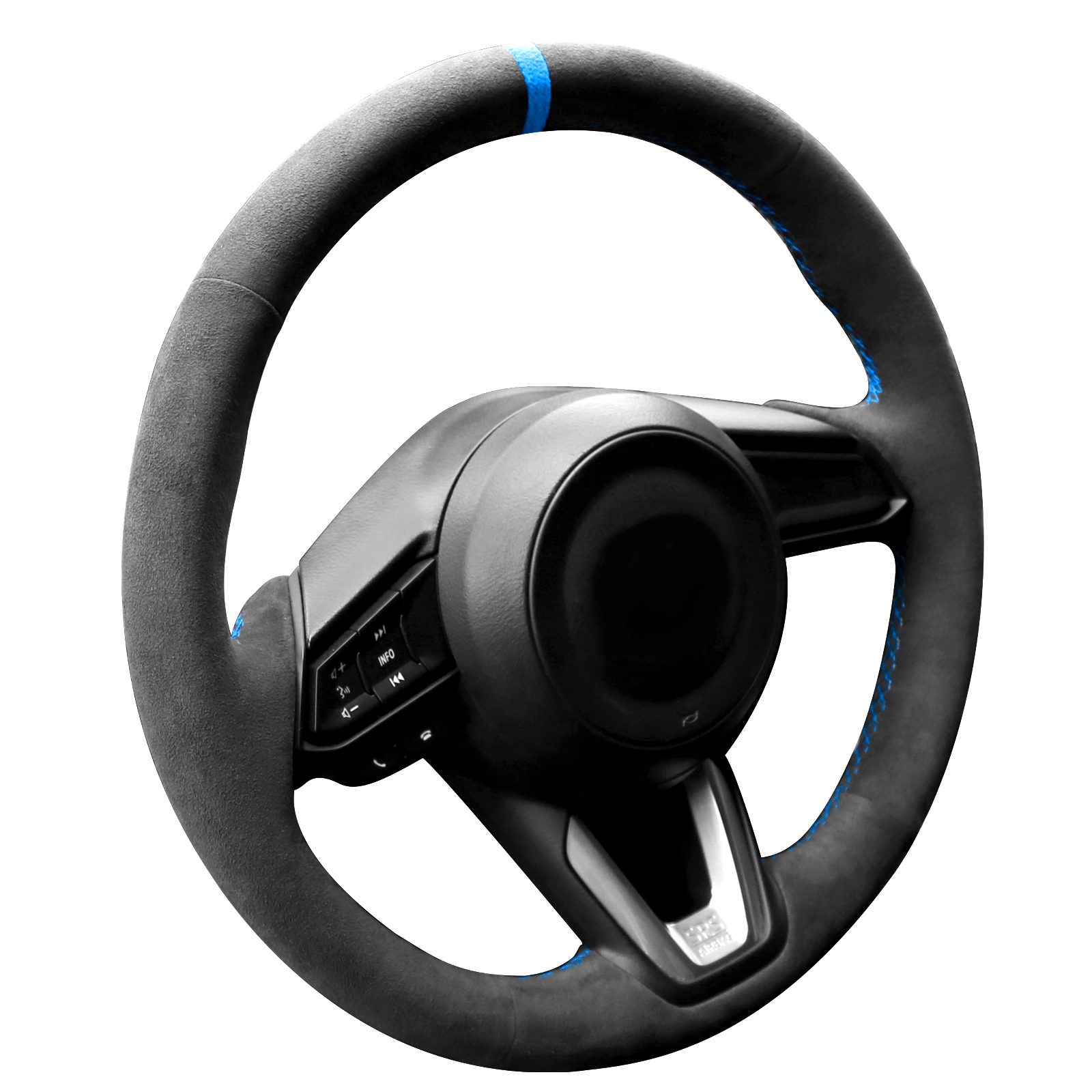 Alfanxi Hand Stitch Steering Wheel Cover Alcantara Material for Mazda 3 Axela Mazda 6 Atenza CX-3 CX-5 CX-9 2016-2021(Blue Stripe)
