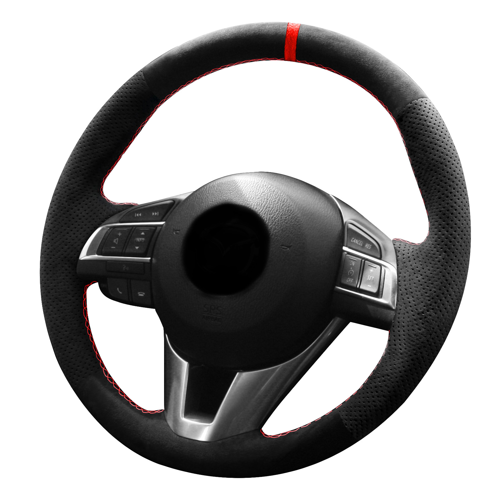 Alfanxi Hand Stitch Steering Wheel Cover Alcantara Material for Mazda 3 Axela Mazda 6 Atenza Mazda 2 CX-5 2013-2017(Perforated Sides,Red Stripe)