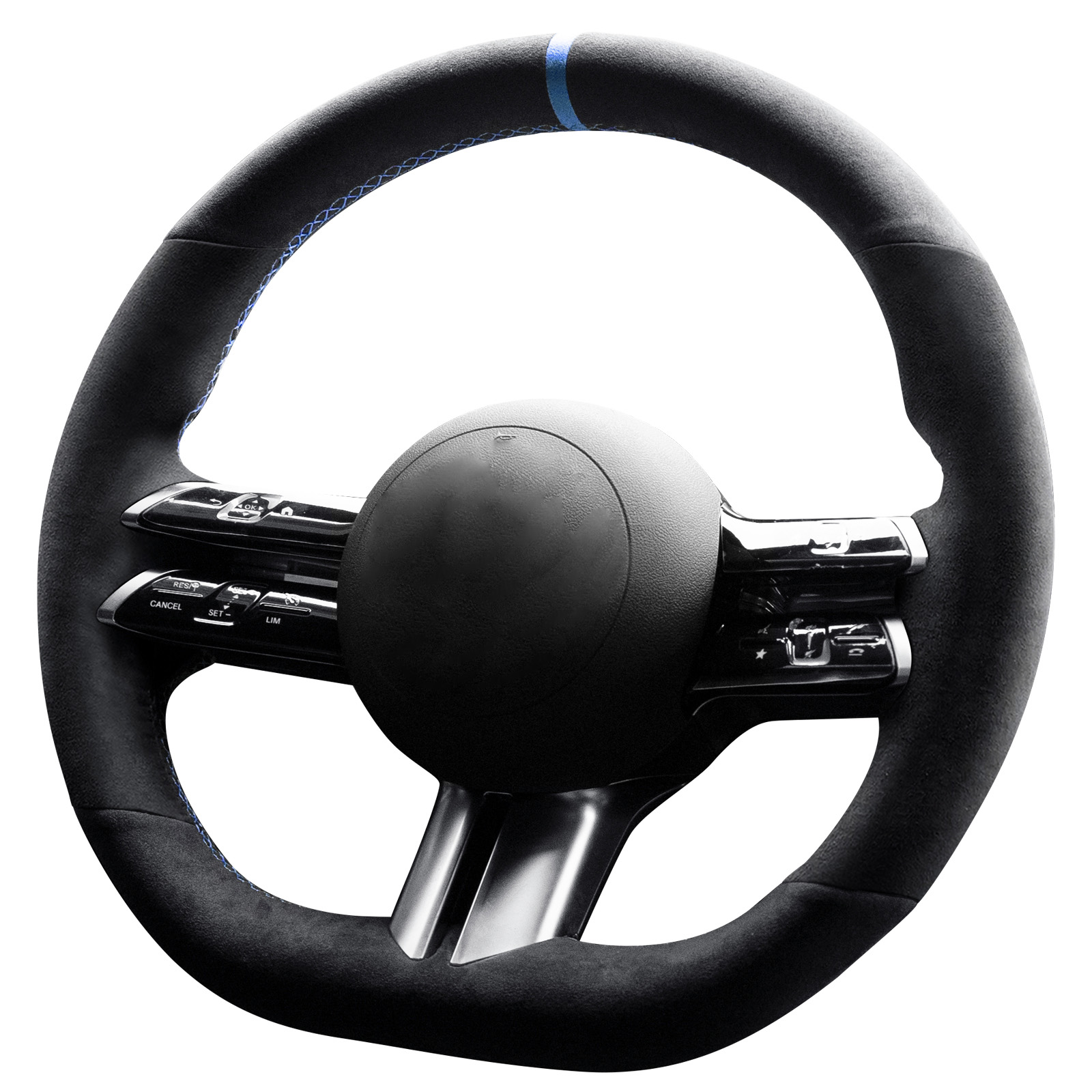 Alfanxi Hand Stitch Steering Wheel Cover Alcantara Material for Mercedes Benz C-Class W206 E-Class W213 S-Class W223(Blue Stripe)