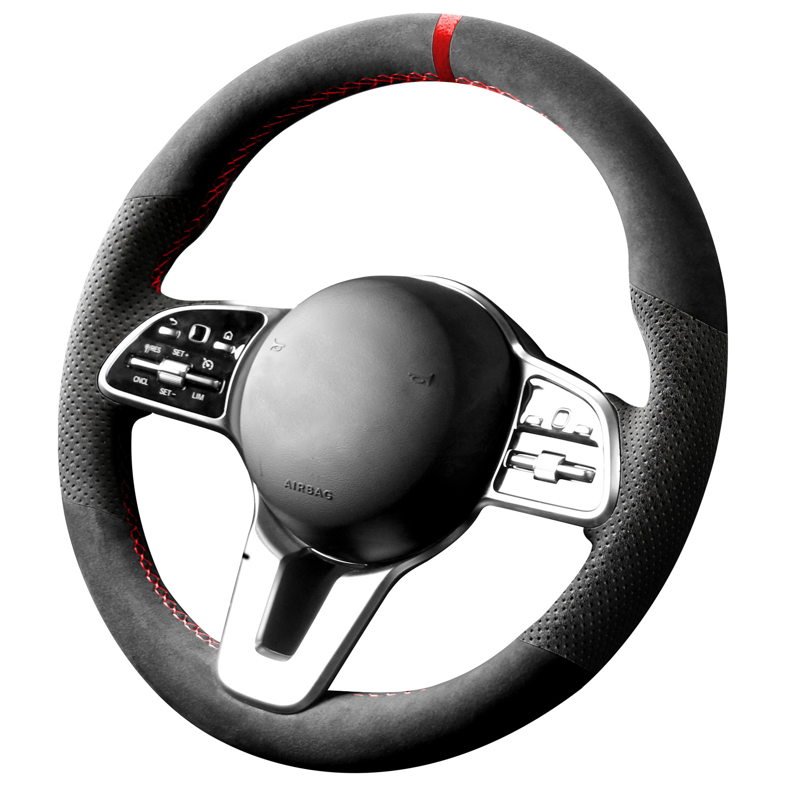 ★ Material: Made of high-quality Alcantara, The best Suede imported from Italy.Excellent wear resistance,cold resistant,breathable,odorless,and aging resistance also it is extremely soft and comfortable with high durability,looks very ​luxurious and fashionable.It is best cool and classic steering wheel cover which offers the unique automotive interior decoration also it is a good replacement to protect your original steering wheel cover from damage and wear and tear.