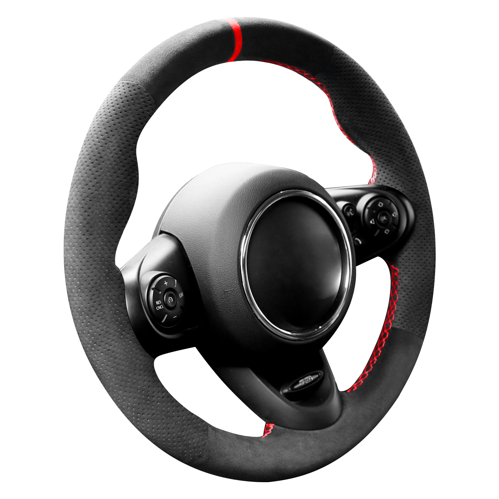 Alfanxi Hand Stitch Steering Wheel Cover Alcantara Material for Mini JCW Clubman JCW Convertible JCW Countryman JCW 2014-2023 (Perforated Sides,Red Stripe)