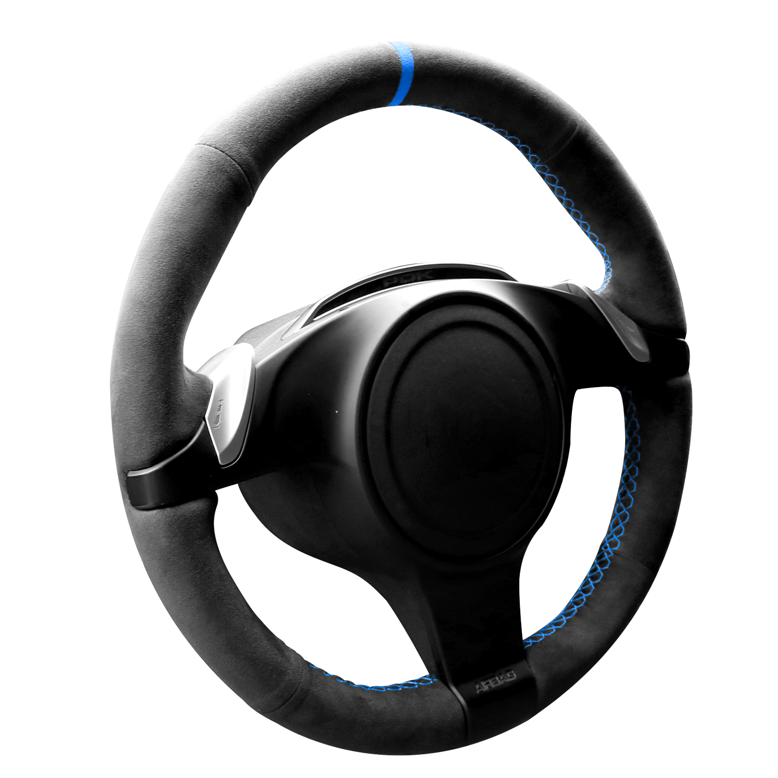 Alfanxi Hand Stitch Steering Wheel Cover Alcantara Material for Porsche 911 Boxster Cayman Cayenne Panamera (Blue Stripe)