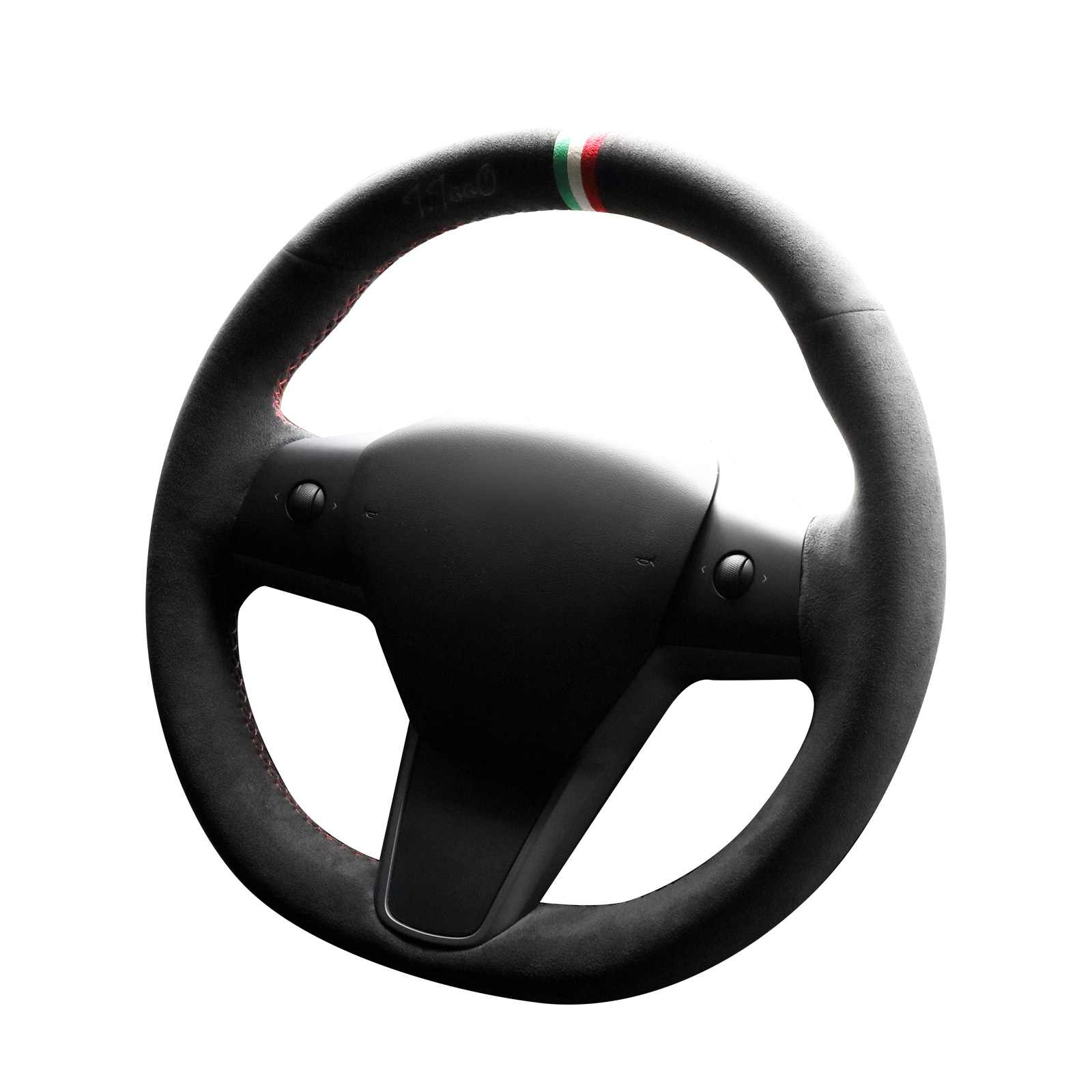 Alfanxi Hand Stitch Steering Wheel Cover Alcantara Material for Tesla Model 3 Model Y 2018-2022(Three Color Stripe,Red Stitching))