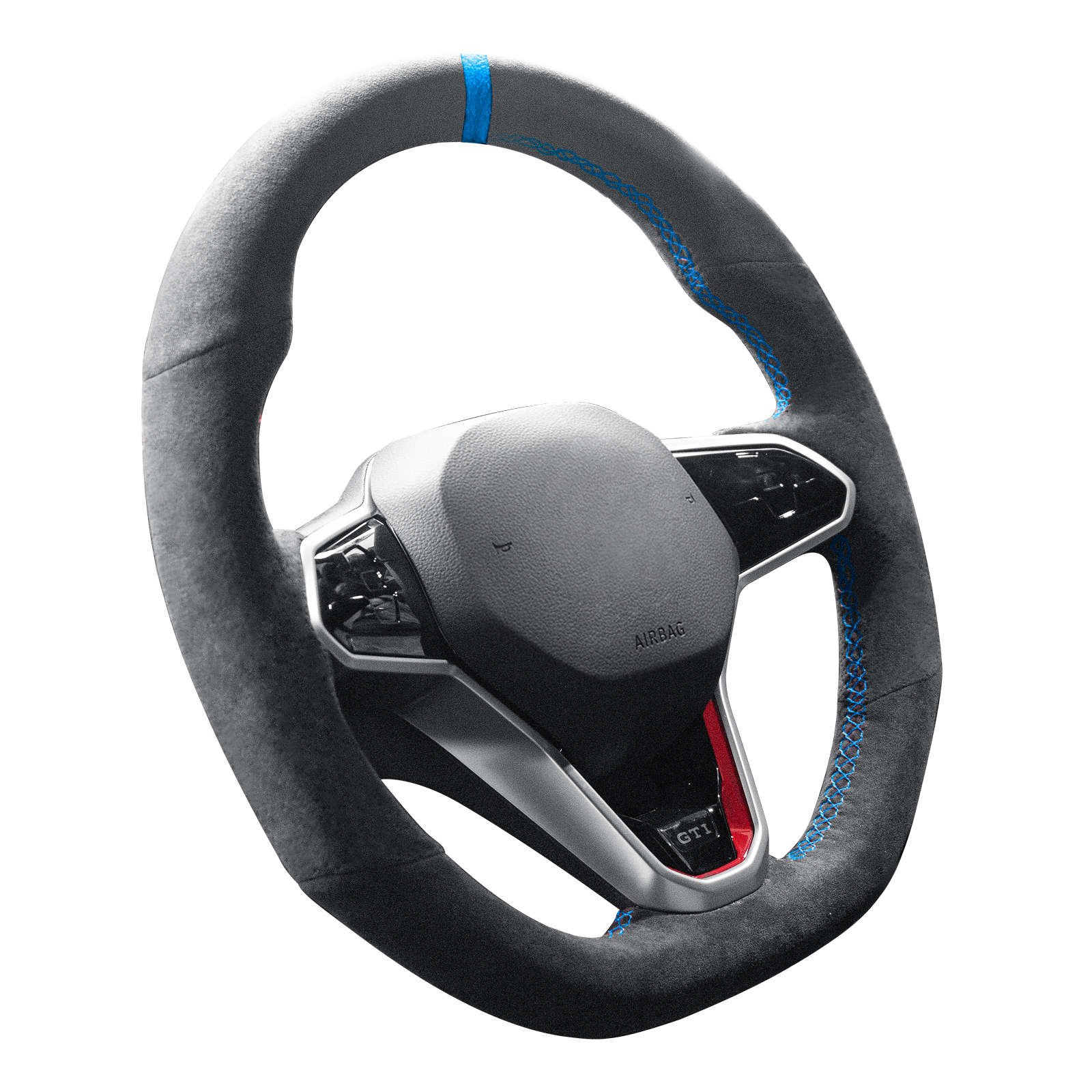 Alfanxi Hand Stitch Steering Wheel Cover Alcantara Material for Volkswagen Golf 8 MK8 GTI Golf GTE 2020 2021 (Blue Stripe)