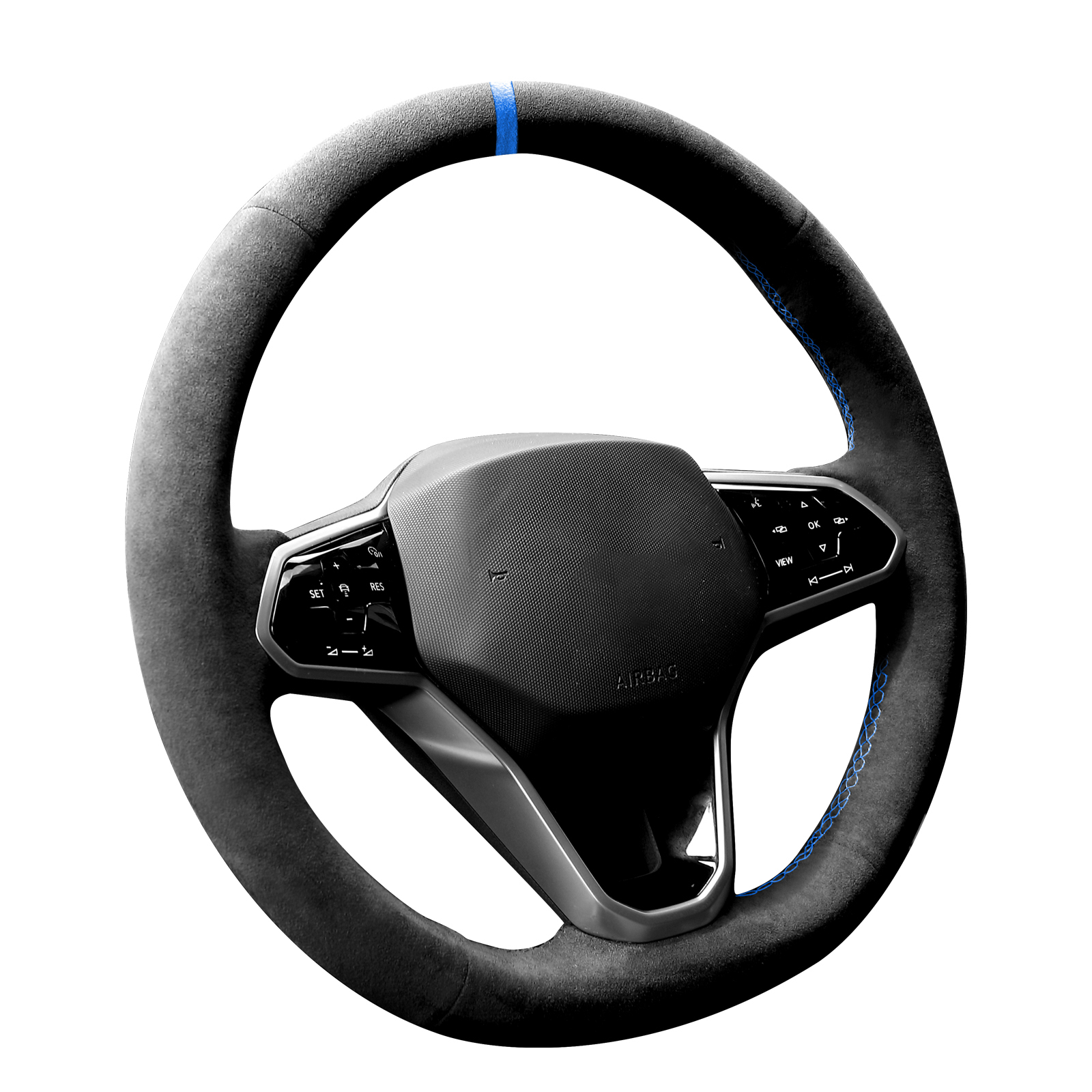 Alfanxi Hand Stitch Steering Wheel Cover Alcantara Material for Volkswagen Passat B9 MK8 Golf 8 New Polo Jetta Tiguan Sharan(Blue Stripe)