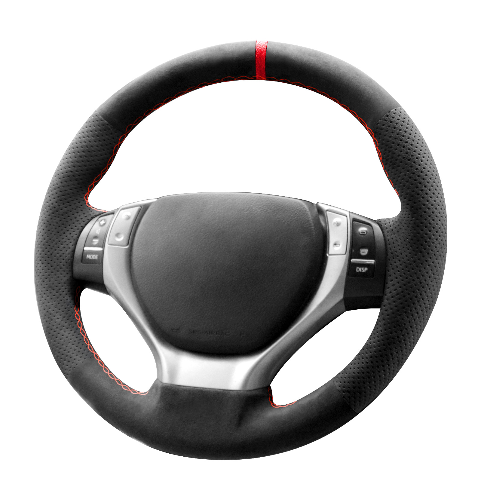Alfanxi Hand Stitch Steering Wheel Cover Fits Alcantara Material for Lexus ES250 ES300H GS250 GS300H GS350 RX270 RX350 RX450H (Perforated Sides,Red Stripe)