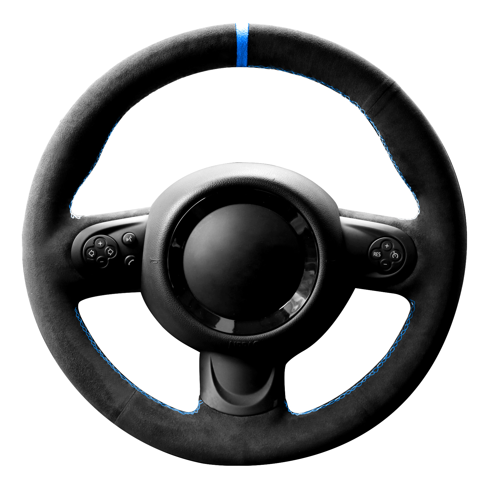 Alfanxi Hand Stitch Steering Wheel Cover Fits Alcantara Material for Mini Cooper Cooper S One(Blue Stripe)