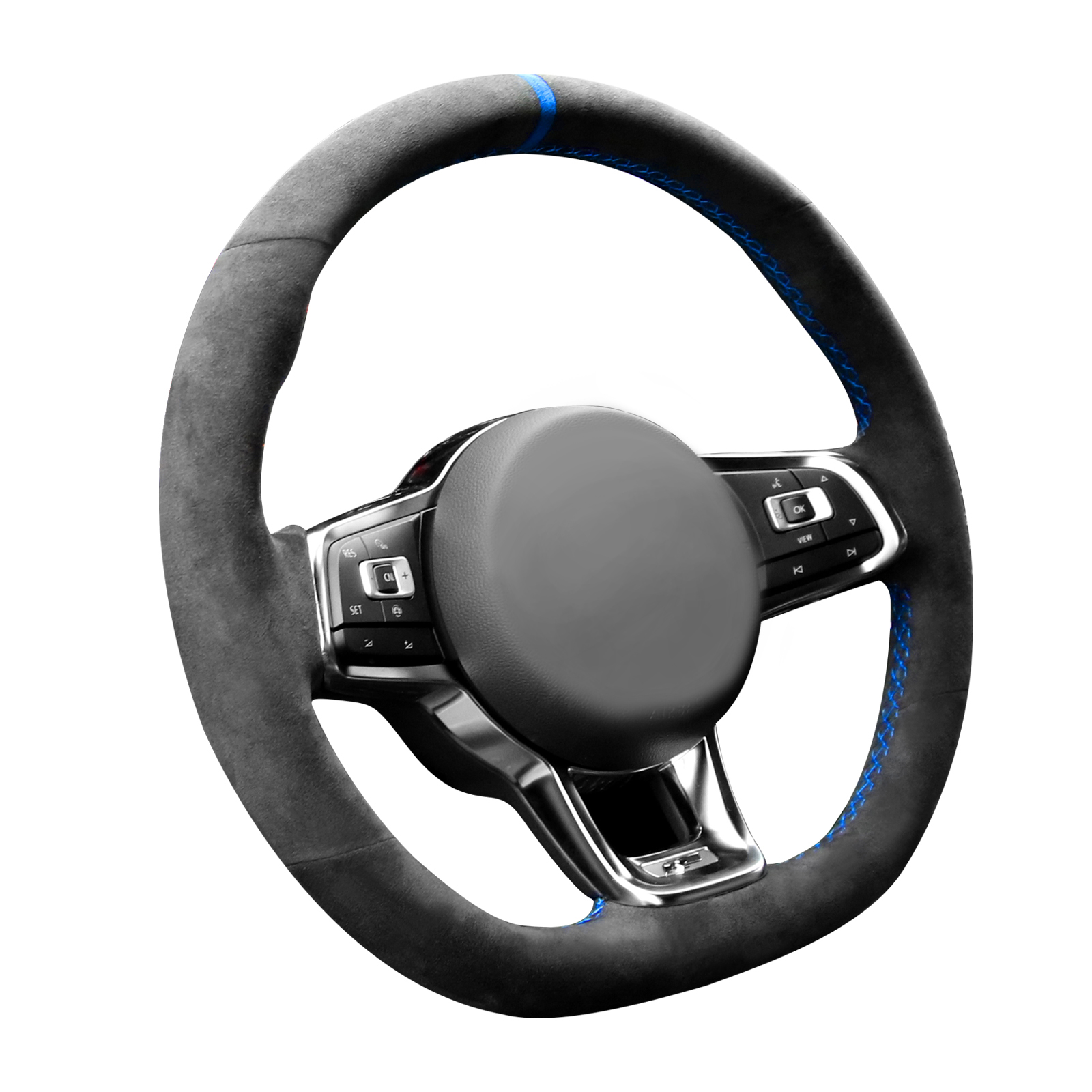 Alfanxi Hand Stitch Steering Wheel Cover Fits Alcantara Material for Volkswagen Golf GTI Golf R MK7 Polo GTI Scirocco (Blue Stripe)