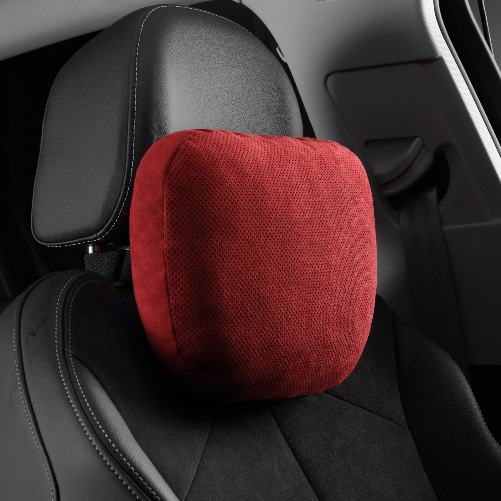 Alfanxi Headrest Pillow Neck Support Double-Sided Italy Alcantara and Nappa Leather Detachable Pillow(Red)
