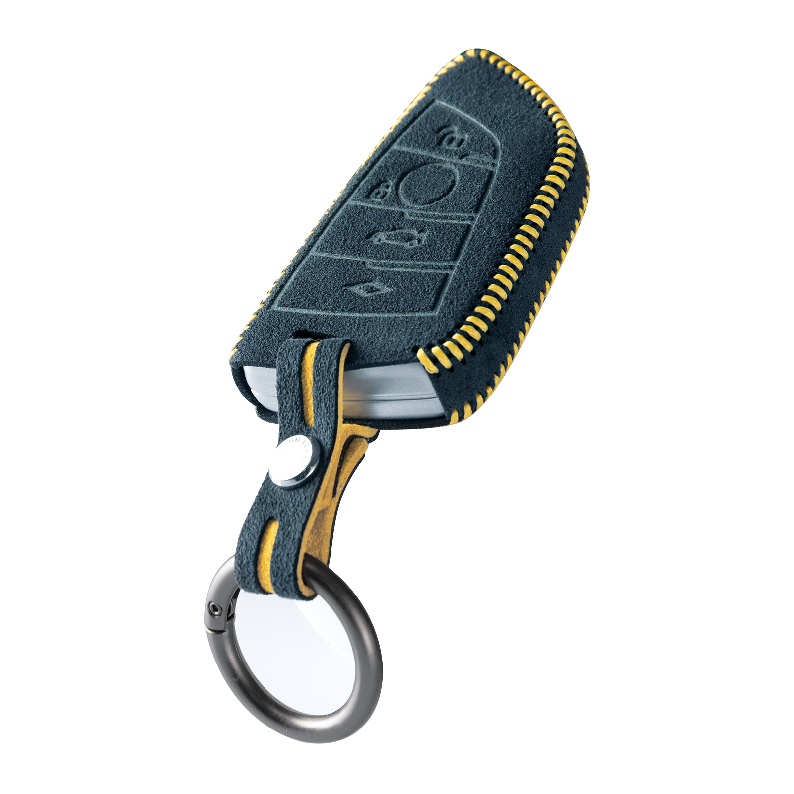 Alcantara Material Key Case Shell for BMW 1 3 5 7 Series 530 F48 X1 X2 X3 X4 X5 X6(Blue and Yellow)